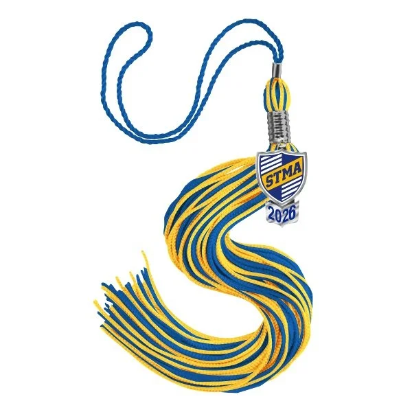 Our number ONE senior item year over year! The custom STMA 2026 Knights Mascot Tassel features the STMA shield with 2026 year date.
